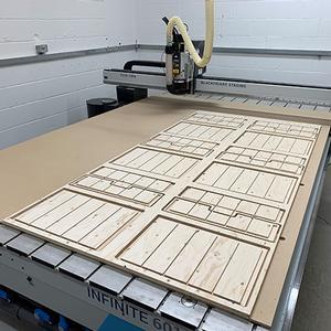 Our new CNC machine will cut sheet sizes as large as 3.05m x 2.15m. We cut plywood, laminate, MDF, acrylics and polycarbonate etc. We can use your own vectored drawings or create a program according to your needs. Order with us online or source directly at our workshop.